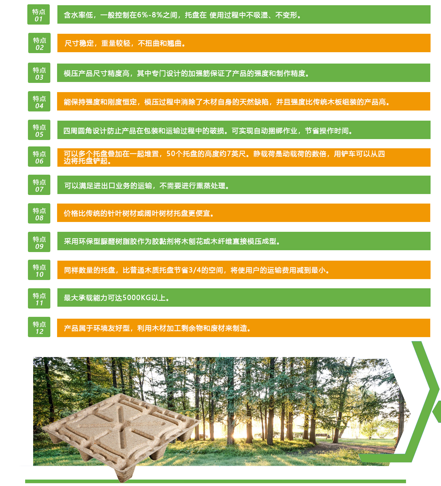 托盤用途十分廣泛,適合化工、電 氣、五金、建材、食品、家具和機械等 產品連同貨物一起包裝、運輸、周轉, 特別適合貨柜車(集裝箱車)。可用于 機械化裝卸作業的火車、汽車、飛機和 輪船等。也可以用作碼頭、商場、倉庫 和貨物堆垛的墊板,是倉儲、出口、物 流的理想工具。